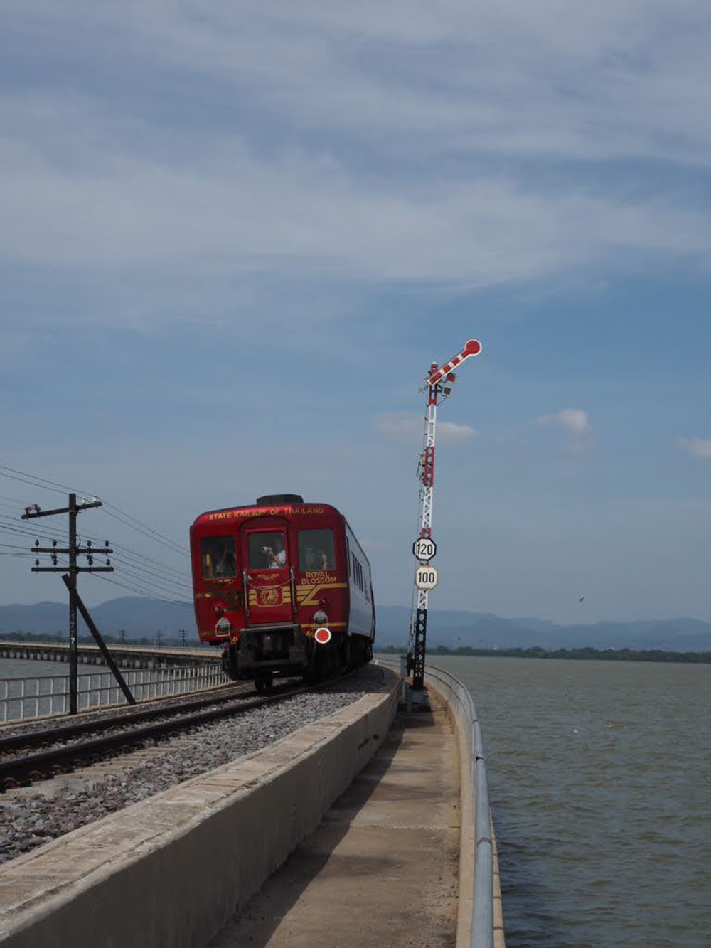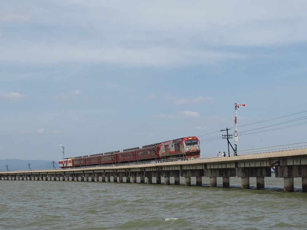 この特別列車のスケジュールは、バンコクのフアランポーン駅を朝06:00に出発してアユタヤ駅に一時停車。アユタヤ駅では、地元の人々が食べ物を車内まで販売しに来てくれますので、ローカルフードが味わえます。その後、パーサック・チョンラシット・ダム駅へ移動。列車は、ダムの真ん中を通過するだけでなく、ダムを横切るように長大な橋の上の中間地点に停車し、約30分ほど線路上でダムの写真撮影が楽しめます。まるでダム(湖)の上を鉄道で走っているかのような不思議な感覚になるこの光景は、一度は体験してみたい絶景スポットにもなっています。