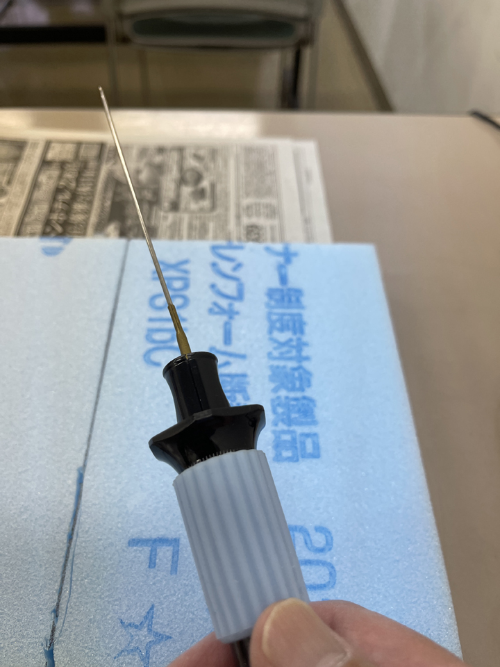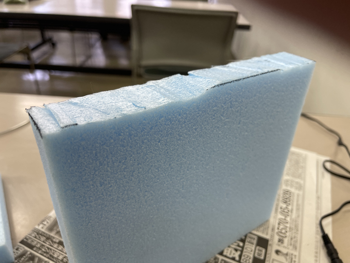 今日のポイントは発泡スチロールカッターの使い方。私のモノではなく講師の方の所有品。