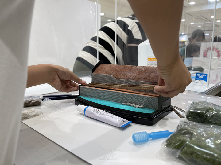 ジェイアール名古屋タカシマヤで7月27日かた8月1日まで開催されていた「わくわくレールランド2022」。そのイベントで7月27日(水)に開催された「親子でつくろう!ミニジオラマ制作教室」に参加しました。