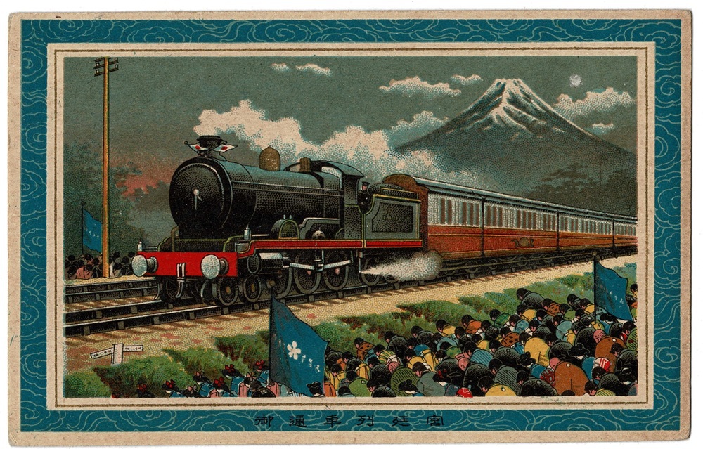 この絵はがきにはその様子が描かれており、この方達はお召し列車の通過を音で知るだけでした。