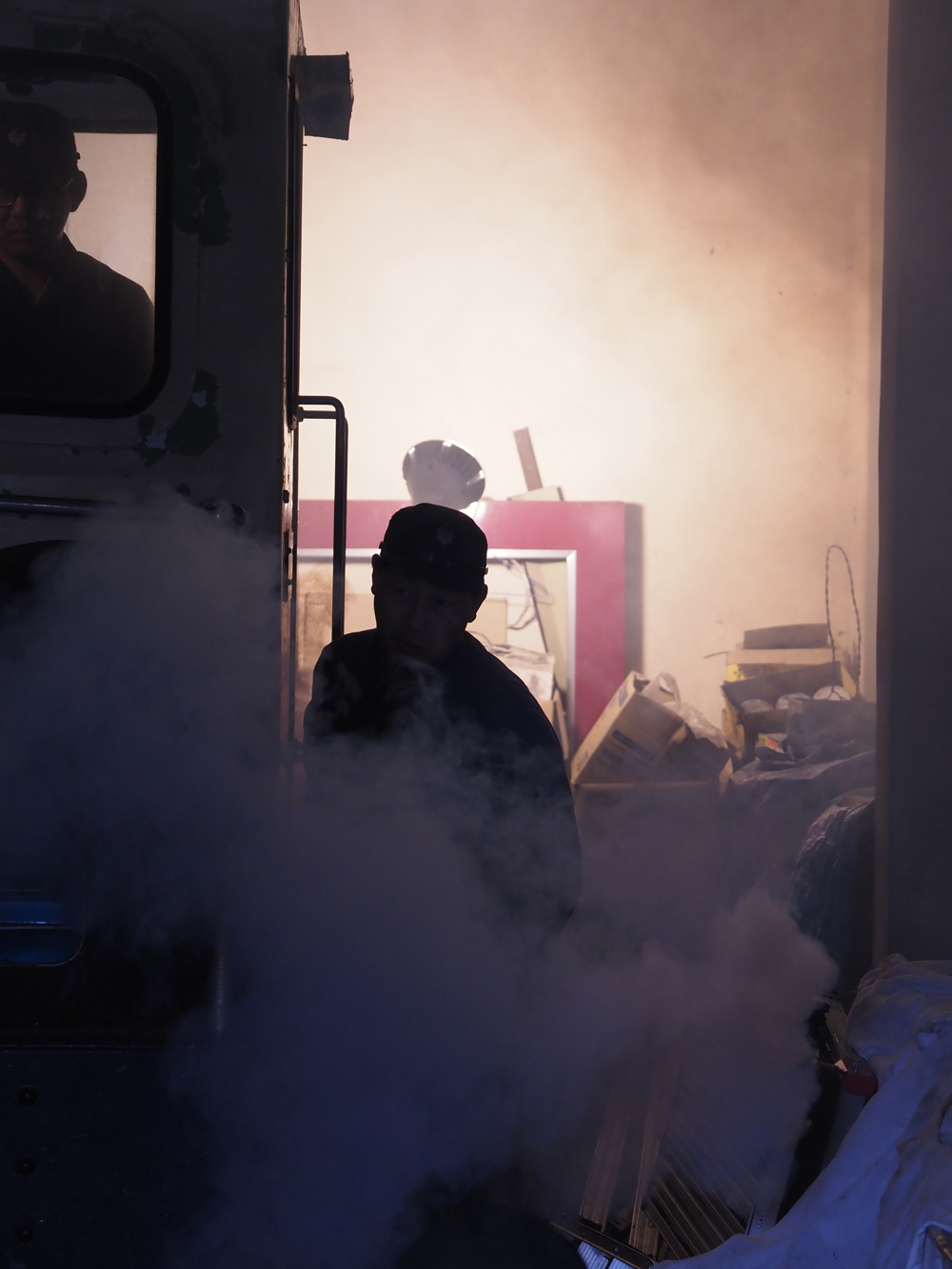 煙だけではそうはならないでしょうが、作業服姿が2人加わるとここまで生き生きと見えるとは思っていませんでした。