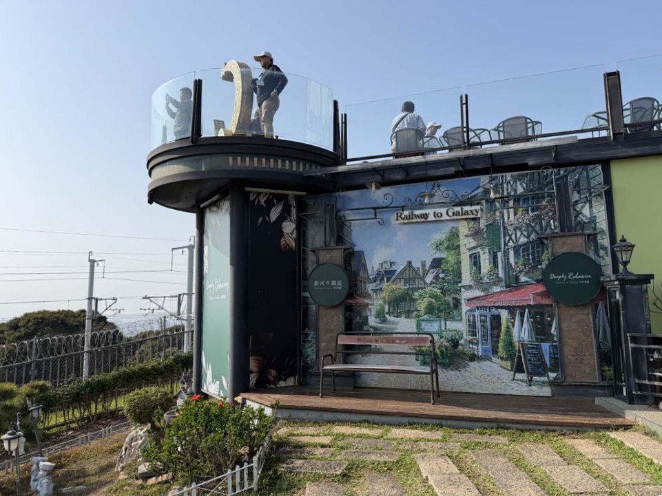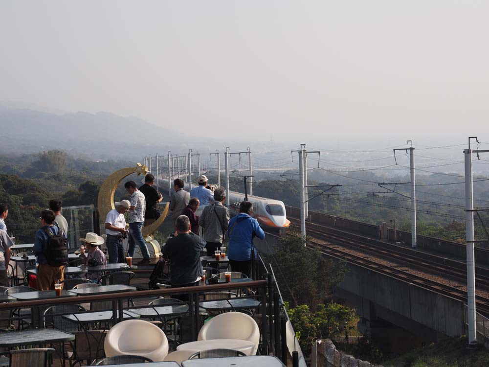 台湾新幹線を見ながらくつろげるカフェであり、撮影スポットでもあります。