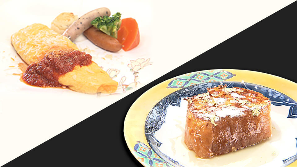 ふわふわオムレツ・鉄板フレンチトースト~金箔ハチミツ添え~