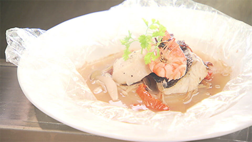 野菜と海鮮 ラッピング蒸し 2,500円 (税込、サービス料込)