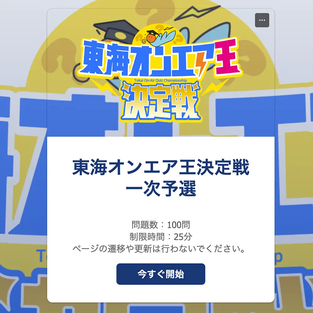 - ③一次予選の解答ページに移動します。「今すぐ開始」というボタンが表示されます。