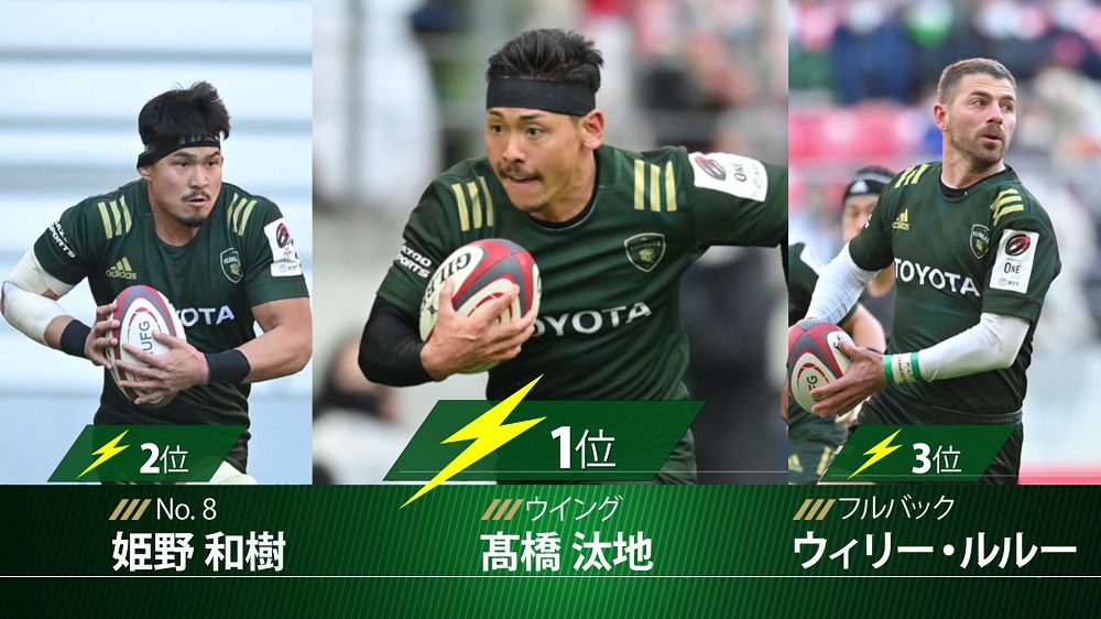 第3位はフルバックのウィリー・ルルー選手、第2位は姫野和樹選手。