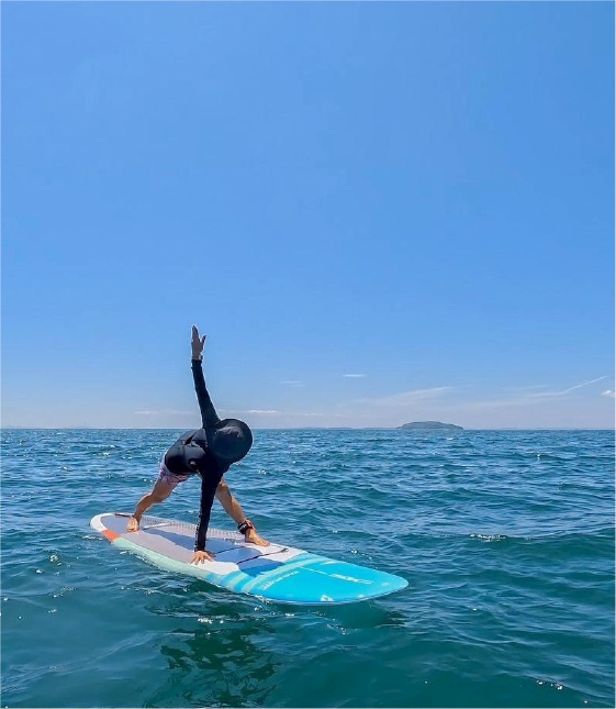 水面上イメージ不安定なボードの上でヨガポーズにトライ!